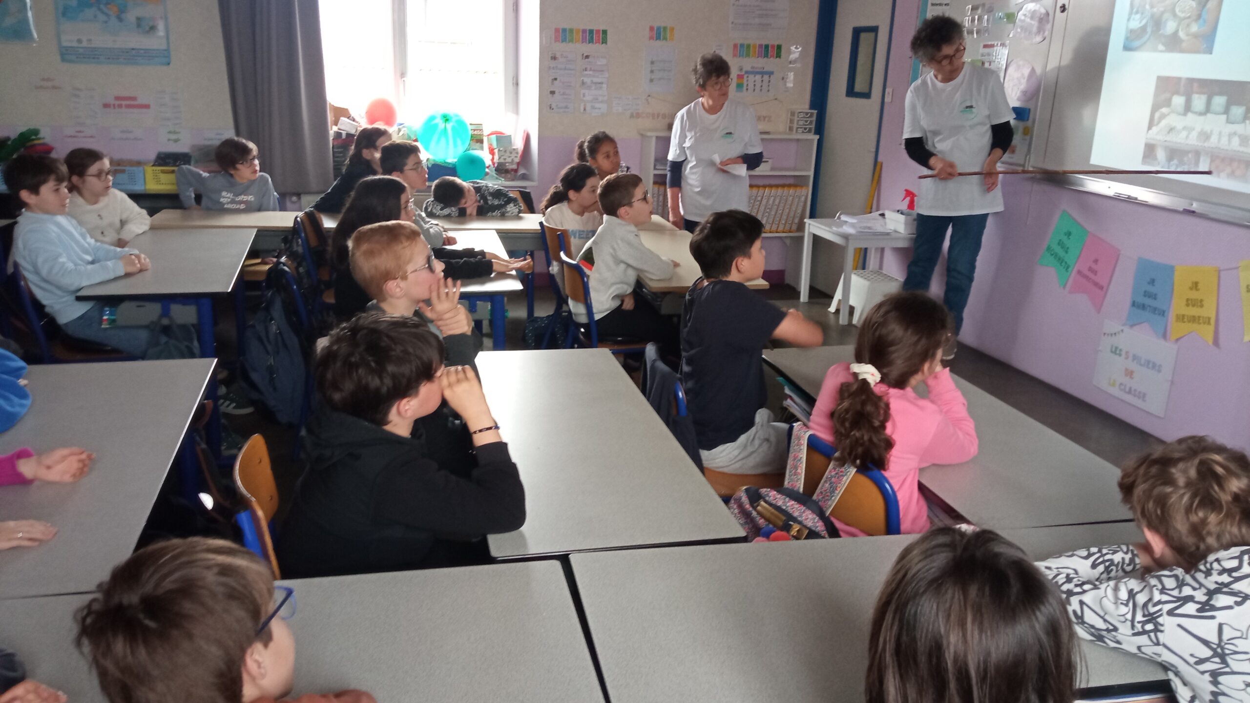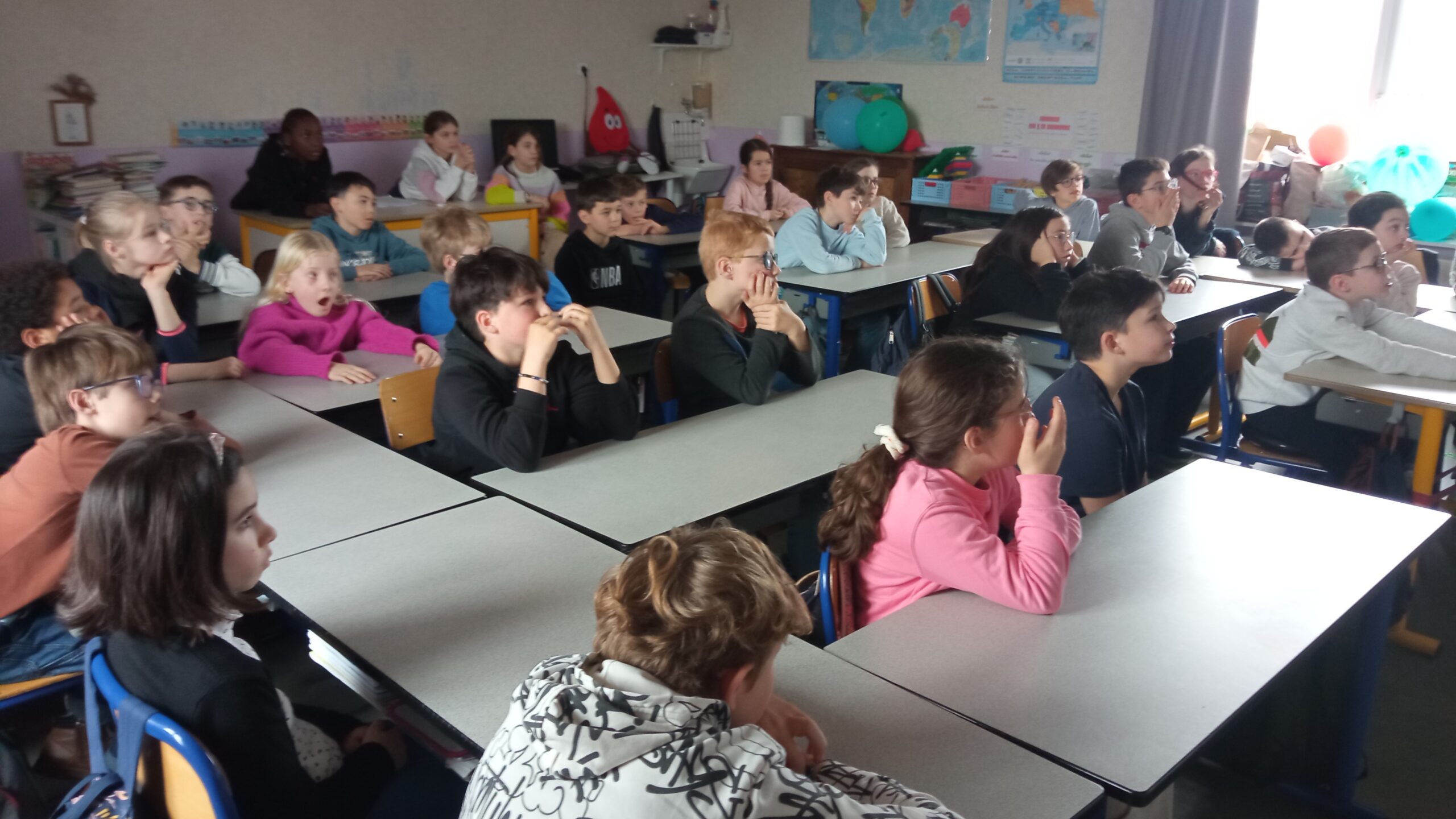 A l’occasion du bol de riz au profit des Amis des Enfants du Monde, Chantal et Laurence sont passées présenter dans l’ensemble des classes le quotridien des enfants aux Philippines, Pays composé de plus de 7700 îles, sa capitale Manille est une des villes les plus peuplées au monde avec 13 millions d’habitants. La pauvreté y est très présente.